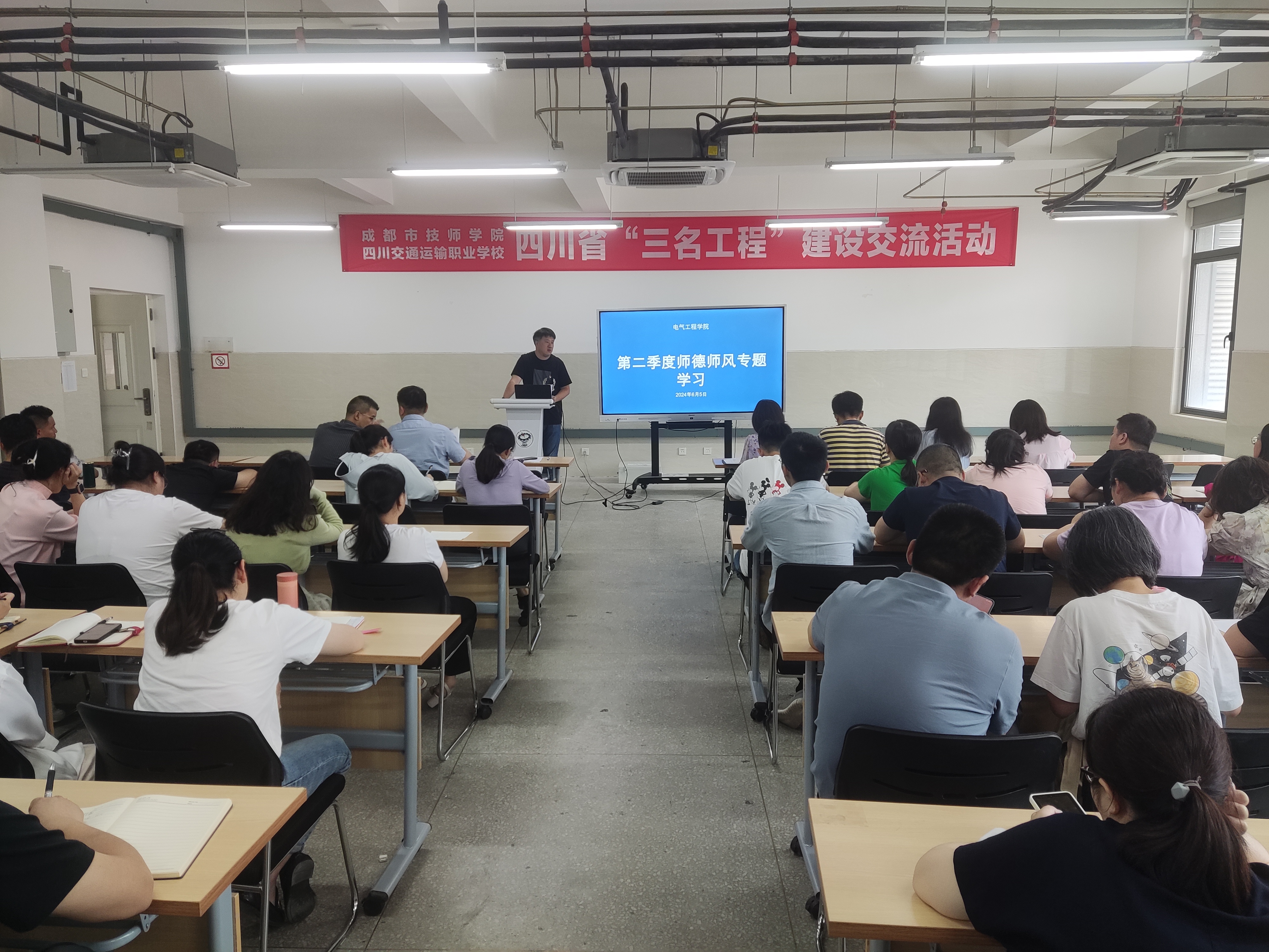 为切实做好教师队伍建设的重点工作,持之以恒巩固拓展师德师风建设成效,抓好教育家精神弘扬践行为,根据学校《弘扬教育家精神 争做时代“大先生”——2024年师德师风建设方案》(成技院委发〔2024〕18号)文件精神,结合党纪学习教育和廉洁学校建设方案有关要求,6月5日,公司开展师德师风专题教育活动暨以“莲(廉)心铸师魂”为主题的师德大讲堂。学习活动由公司党总支副书记陈志欣主持,全体教职工参加。