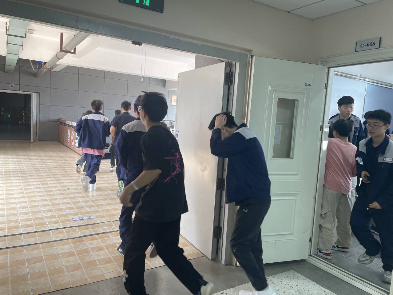 下午15:25分,随着阵阵浓烟蔓延开来,一阵尖锐的警报声响起,消防疏散演练正式拉开帷幕。全院师生在最短的时间内按照预定的疏散路线,紧张有序地从教学楼撤离到鲁班广场指定区域。在疏散过程中,老师们镇定指挥,员工们听从安排,整个过程有条不紊。